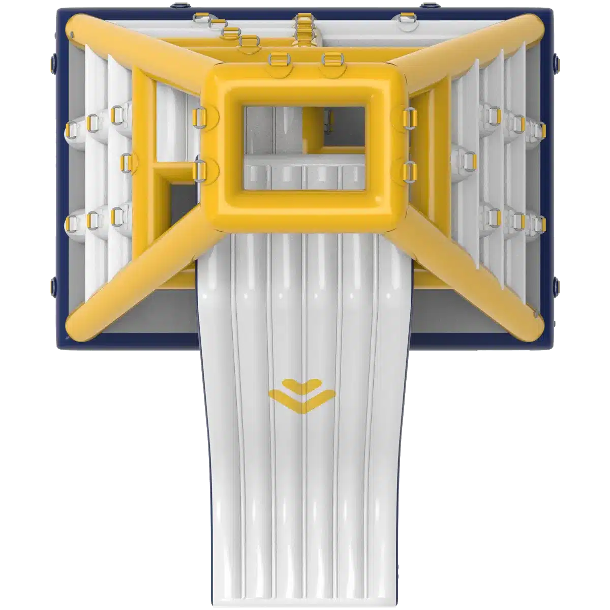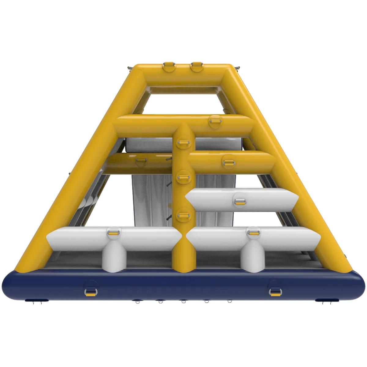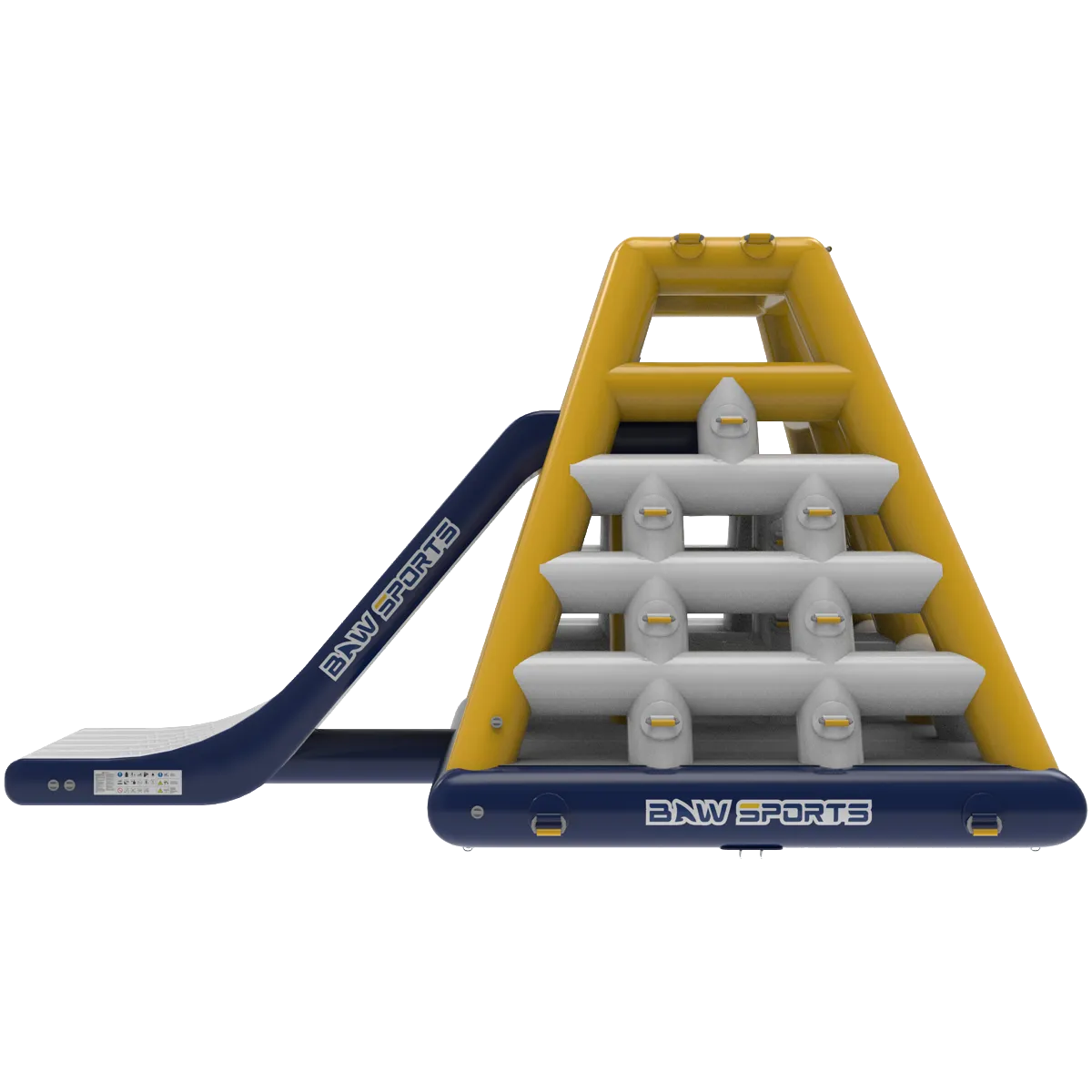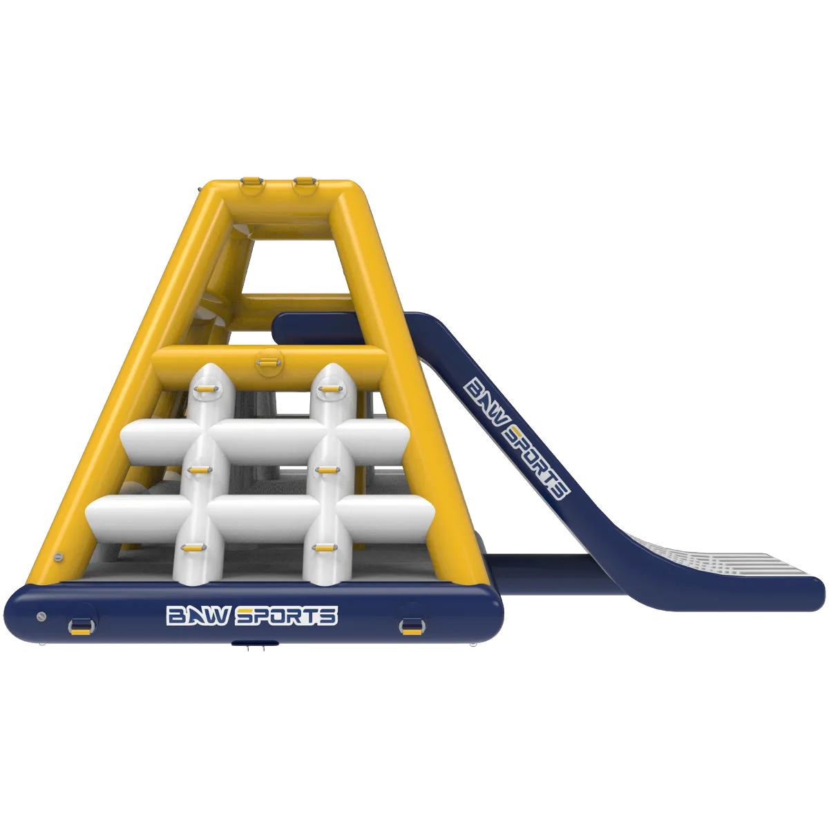 Apex XL un ostacolo a forma di piramide che può essere scalato su 3 lati, mentre il quarto è un grande scivolo che si tuffa in acqua da oltre 2 metri di altezza per emozioni forti.