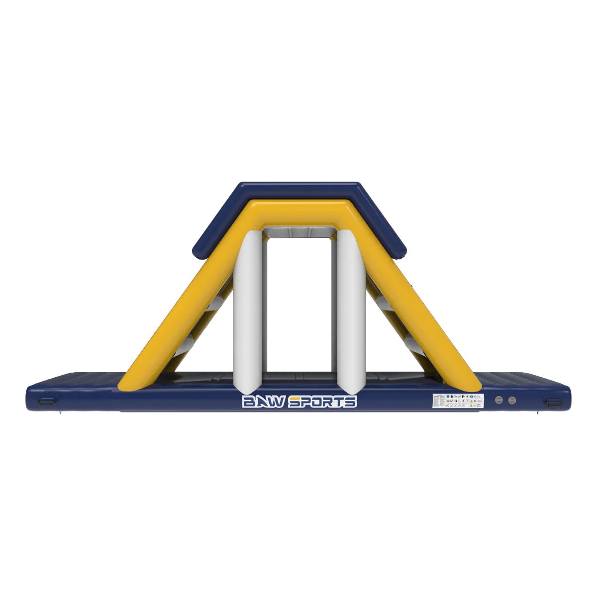 Un grande classico tra i nostri ostacoli, HighStep L. L'idea è semplice: si sale da un lato per poi scendere dall'altro senza cadere! Preferite buttarsi in acqua? Allora potrete saltare dalla piattaforma alta 2,5 metri!