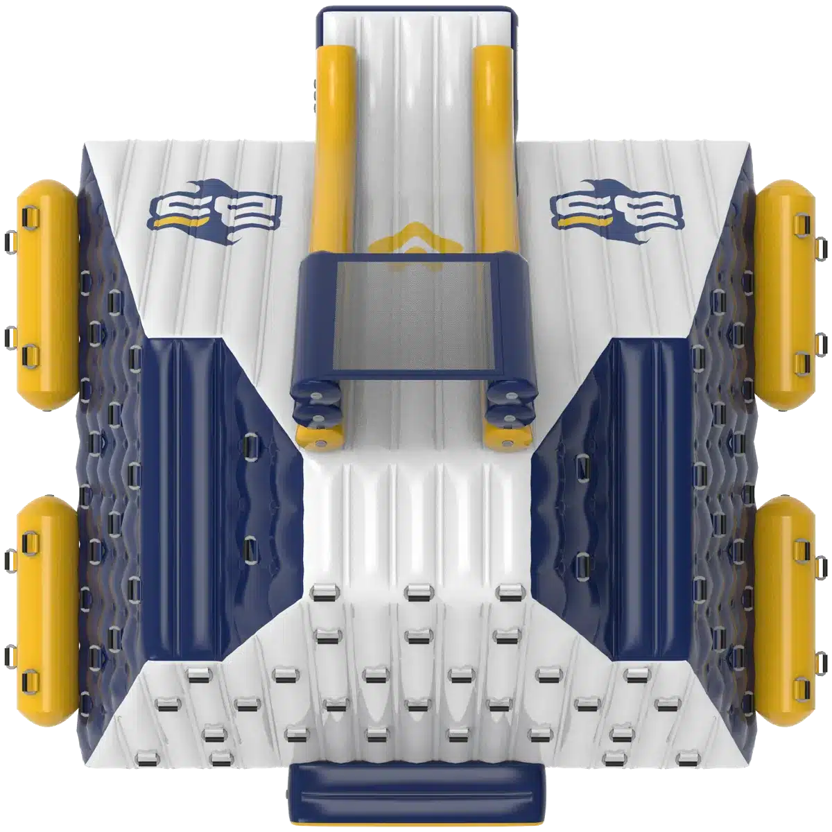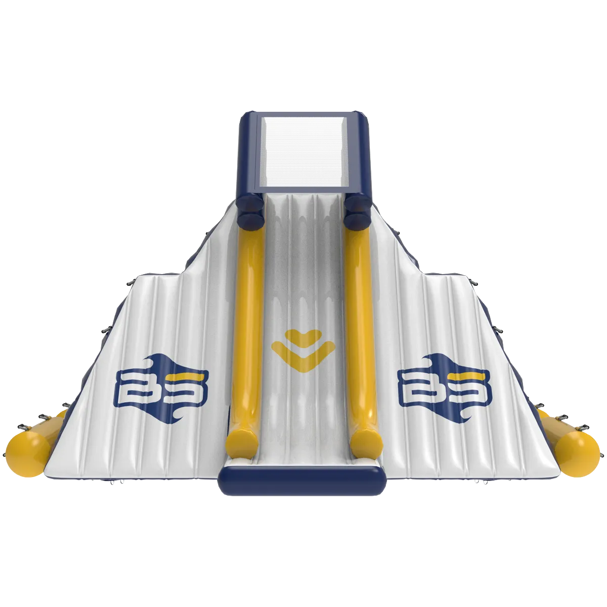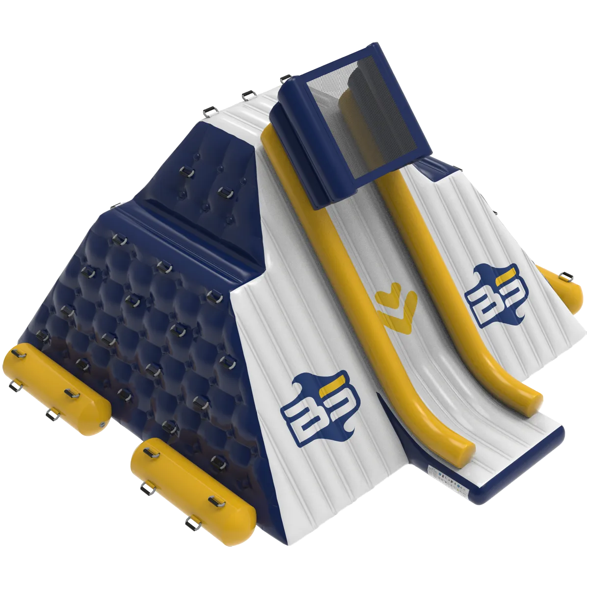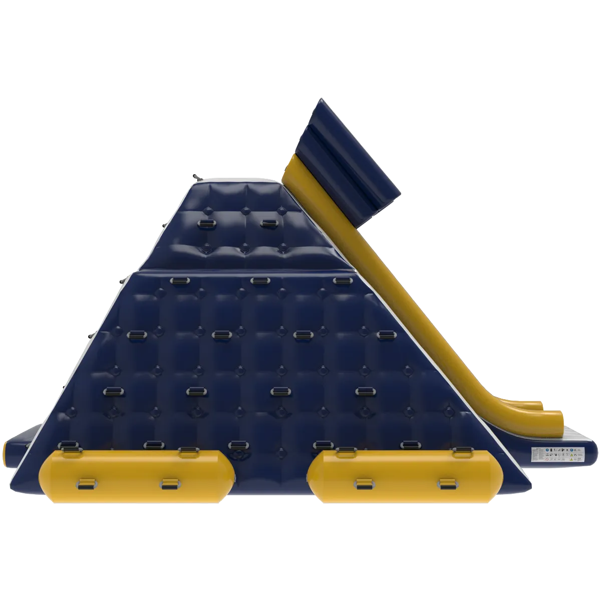 Tra i nostri ostacoli più alti c'è il PeakSlide alto 4 metri PeakSlide deve essere scalato con l'aiuto di maniglie per poi scendere lungo il suo scivolo ad alta velocità.